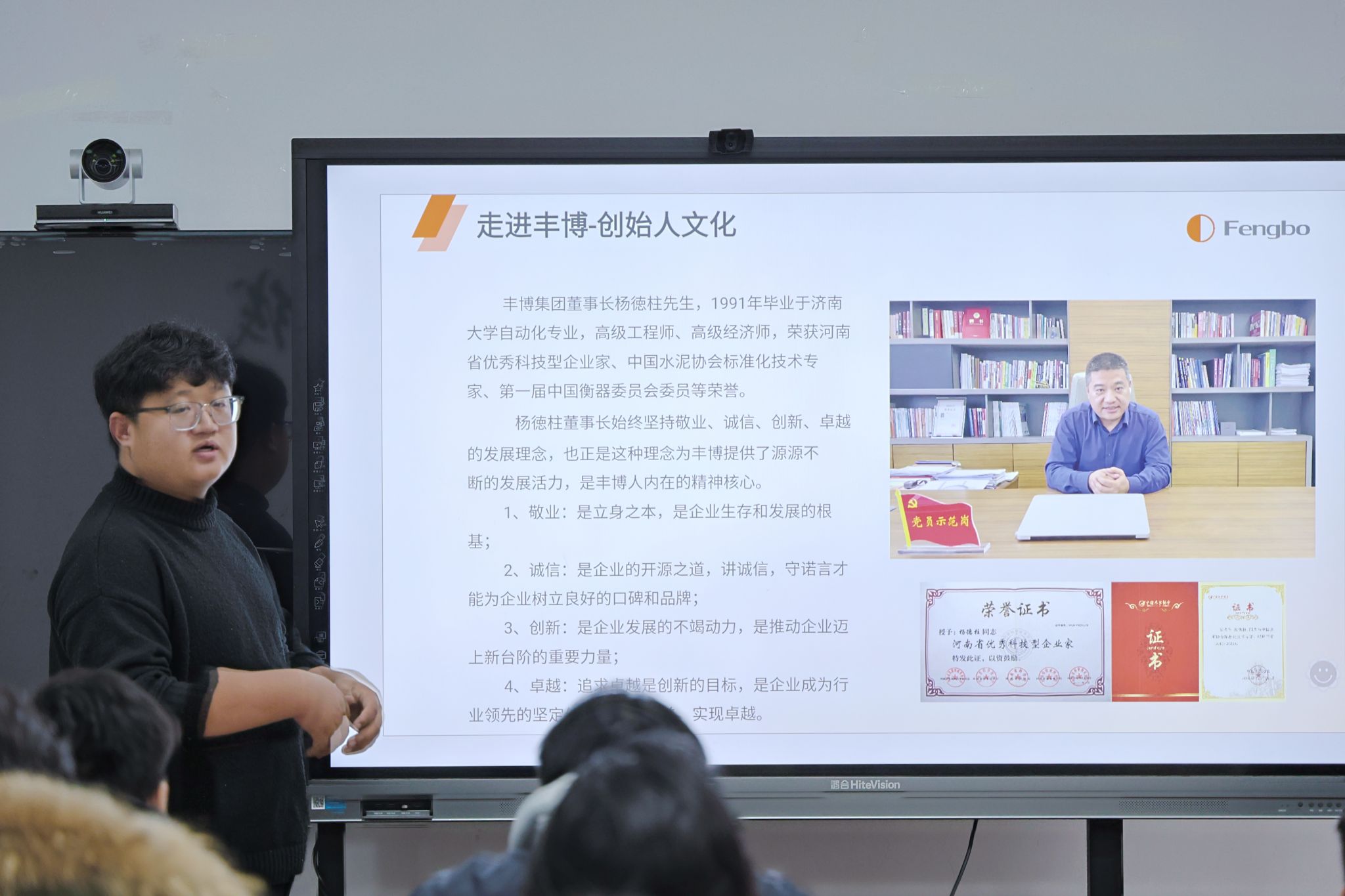 王轩经理播放企业宣传片,向在场学生展示丰博集团的基本概况与发展历程。付艳广总监为在场学生剖析了当下的就业形势,并结合自身多年从事人力资源工作经历,为同学们未来职业发展提出几点意见:一要立足专业、科学进行规划;二要专心专注、在领域内深耕细作;三要热爱本职,快乐拼搏创造价值。随后,企业在现场进行简历投递和面试初筛环节,这一举措既提高了招聘效率,也让学生们更为直观地了解公司的招聘标准和面试流程。