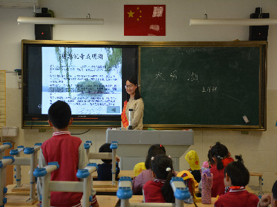 下午四点,志愿者们准时到达卧龙小学,走进课堂,为同学们带来了一场生动而又精彩的讲解。为了更好地激发同学们的兴趣,志愿者们首先绘声绘色地向同学们讲述了大明湖的神话传说:白莲花、蛇不见、蛙不鸣……同学们被一个个精彩的故事吸引。随后,志愿者们用提问的方式向大家介绍大明湖的历史及文化,同学们积极参与其中,争先恐后地举手回答问题,通过这种方式,志愿者们引导同学们由浅入深地了解了课本外的传统文化知识。并且,志愿者们邀请同学们分享自己游览大明湖的经历与感受,一段段小游记承载着小朋友们的温馨与欢乐,一时间课堂上充满了欢声笑语。最后,志愿者们向同学们描述了大明湖的环境现状,并普及了保护环境的小知识,以此来引导小朋友们树立保护环境的观念。