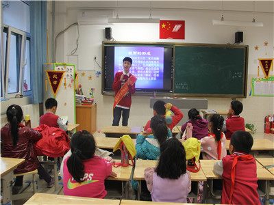 为推广环保理念,号召同学们保护环境,12月4日,9728太阳集团青年志愿者协会的志愿者们走进卧龙小学,开展志愿环教。