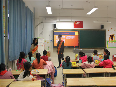 下午四点,志愿者们准时到达卧龙小学,为同学们带来了一节欢乐有趣的课堂。为了使小朋友们更好地了解感恩节的时间、由来等,志愿者们首先以提问的方式进行询问,同学们都争先恐后地回答志愿者们提出的问题。接着,志愿者们通过为小朋友们讲解PPT,详细地介绍了感恩节的历史、意义、特色活动、饮食等:感恩节是美国人独创的节日,也是美国人合家欢聚的节日。感恩节的意义在于,告诉人们人性的美好,从任何事上都能体会到感恩,问候一下父母,朋友,帮助一下需要帮助的人,都是感恩的表现。让一个人学会珍惜,学会感恩,学会理解与宽容,最重要的,学会爱。那即是生命真正赋予每一个人的。他们认真仔细地听讲,积极思考志愿者们提出的问题。在随后的提问环节,小朋友们积极踊跃地举手向志愿者们提出自己的疑问,志愿者们耐心、详细地回答他们提出的每个问题,课堂气氛活跃且秩序良好。本次支教活动在同学们与志愿者们良好的互动中结束。