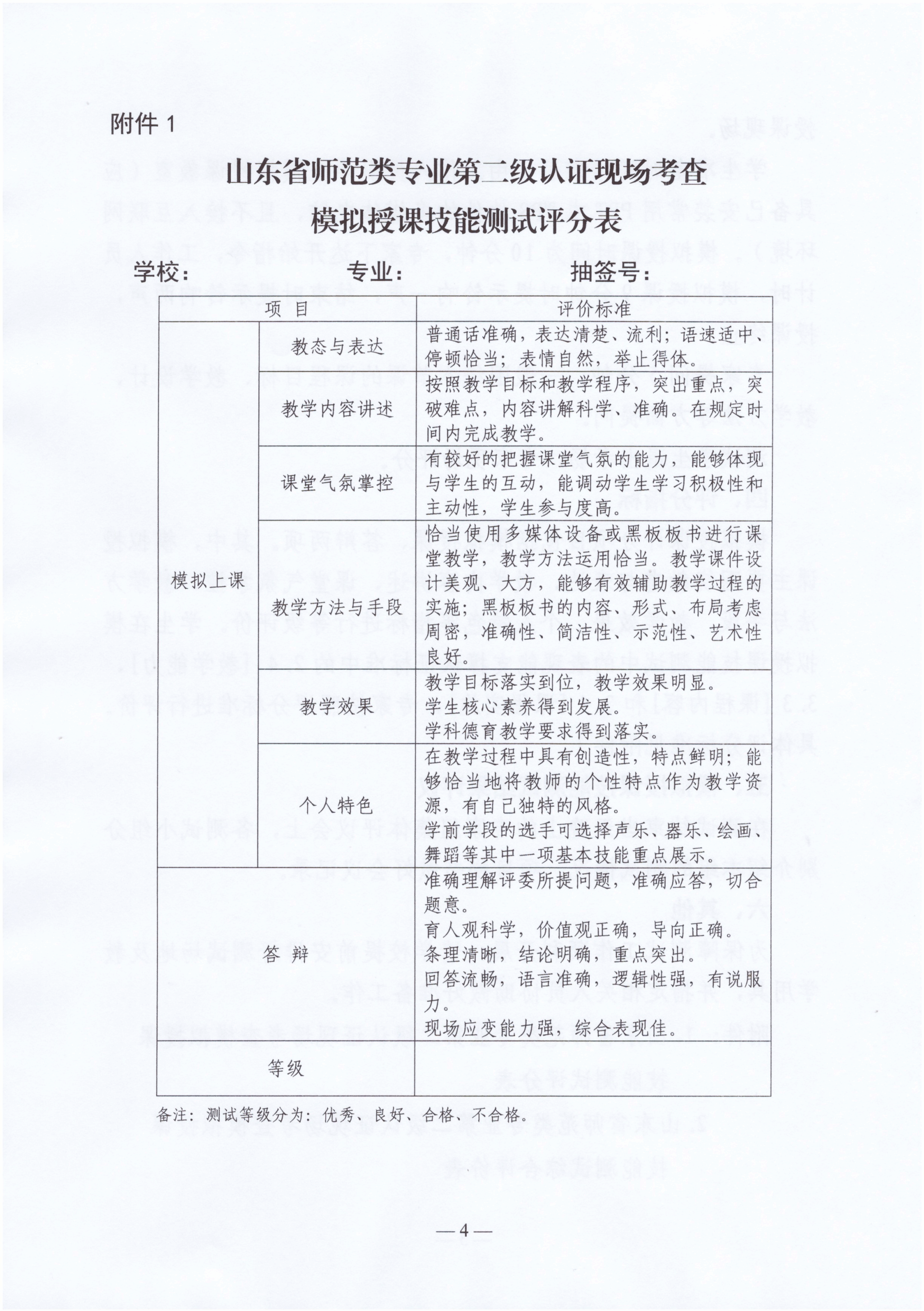 关于印发《山东省师范类专业第二级认证现场考查模拟授课技能测试方案(试行)》的通知